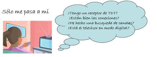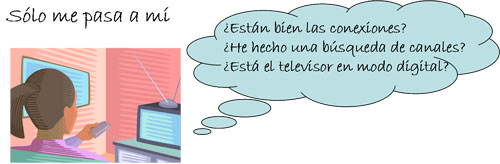 Si sólo ocurre en su casa compruebe que dispone de un receptor de TDT externo o integrado en su televisor, que las conexiones son correctas, que ha seleccionado con el mando a distancia de su equipo el modo digital (DVT) y ha completado con éxito la búsqueda de canales digitales. Consulte la Guía de Conexiones, sintonización y ordenación de canales de la TDT [PDF] [1,28 MB]